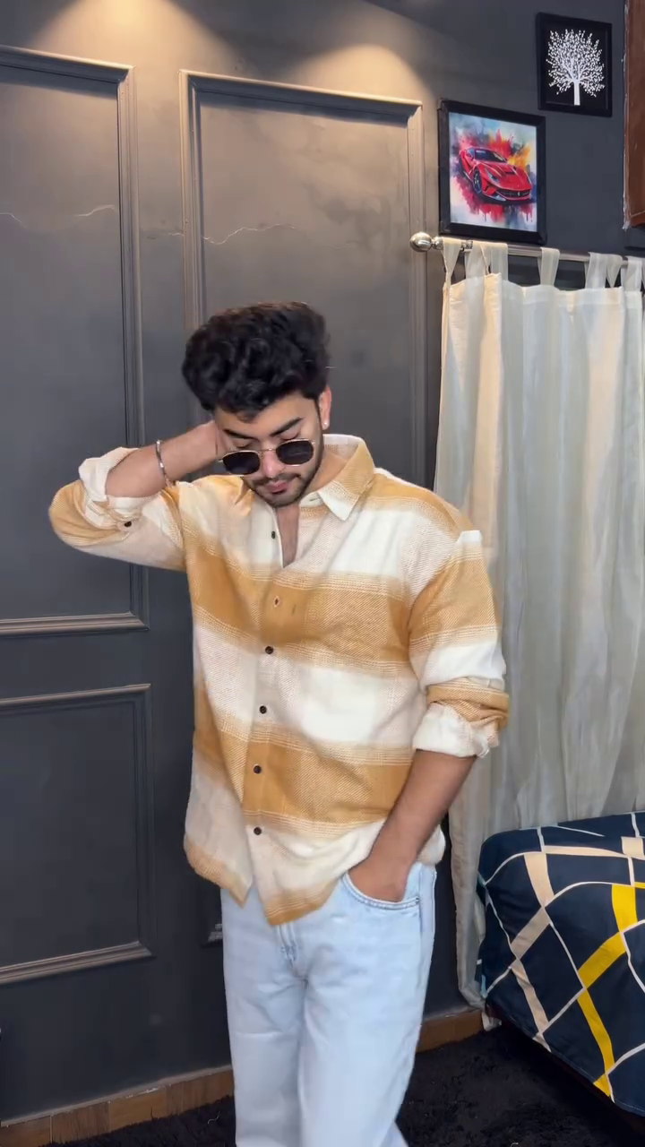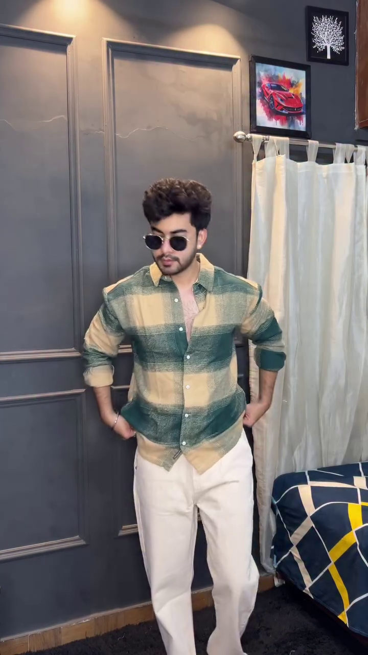 Green & Beige opaque casual shirt for men