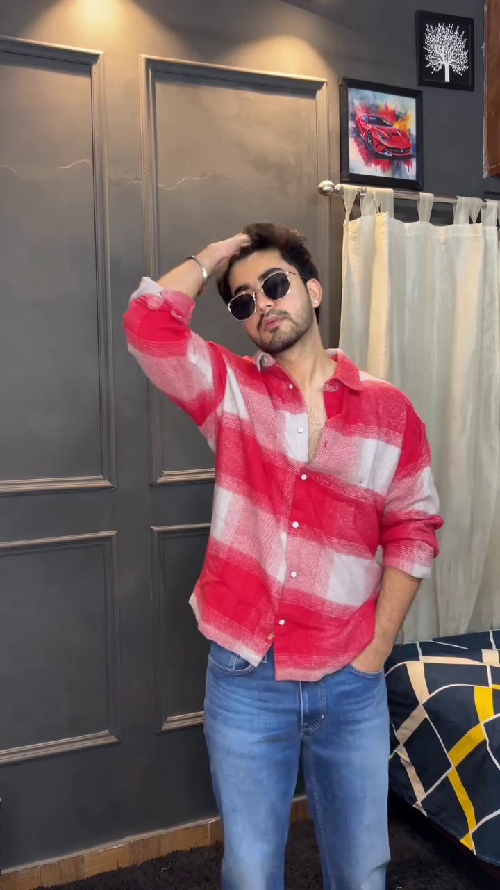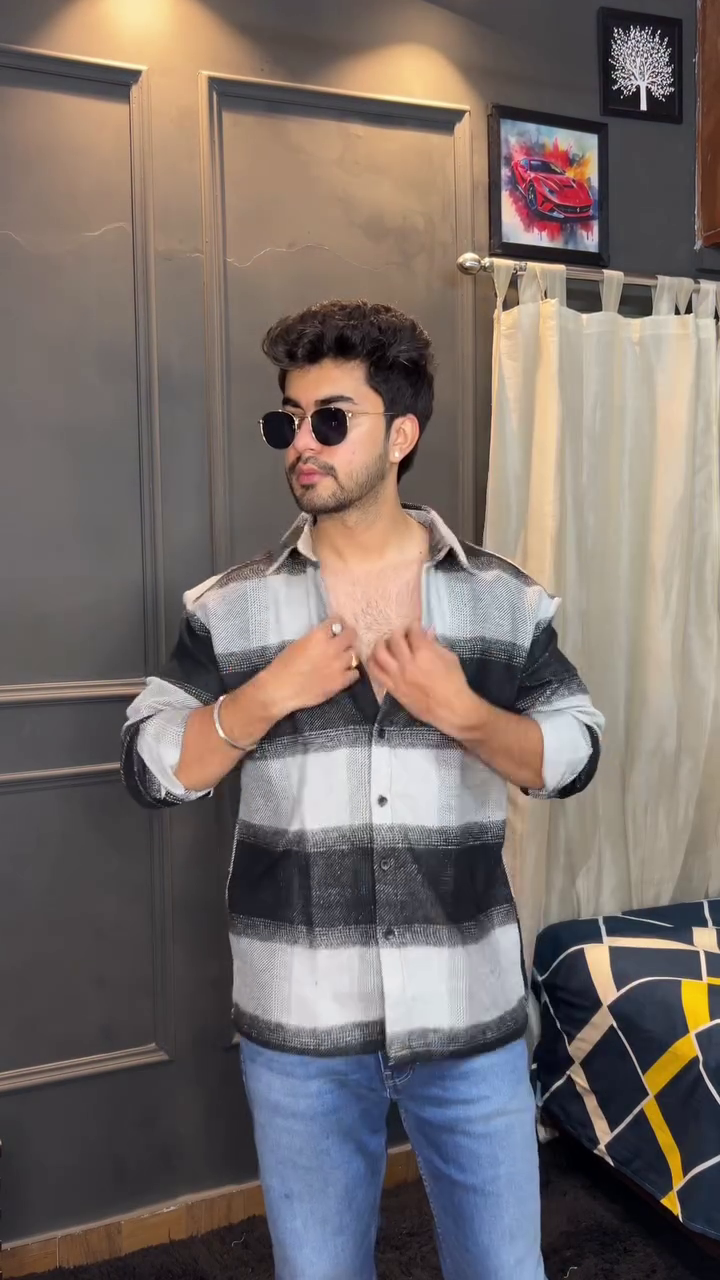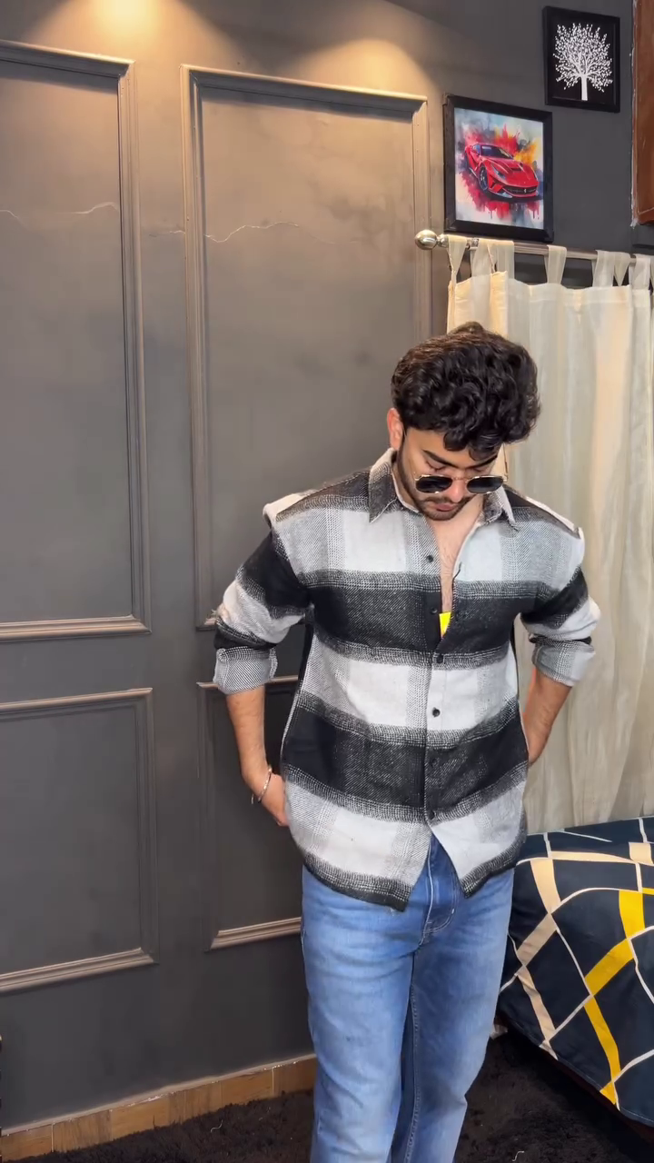 Men Buffalo Checked Spread Collar Casual Shirt