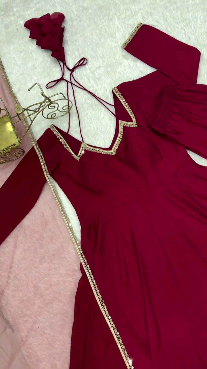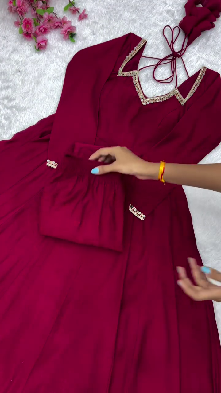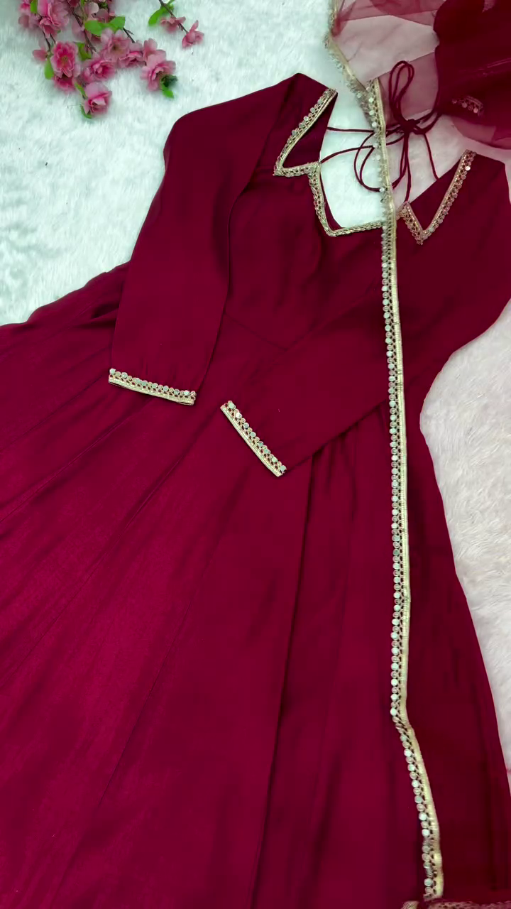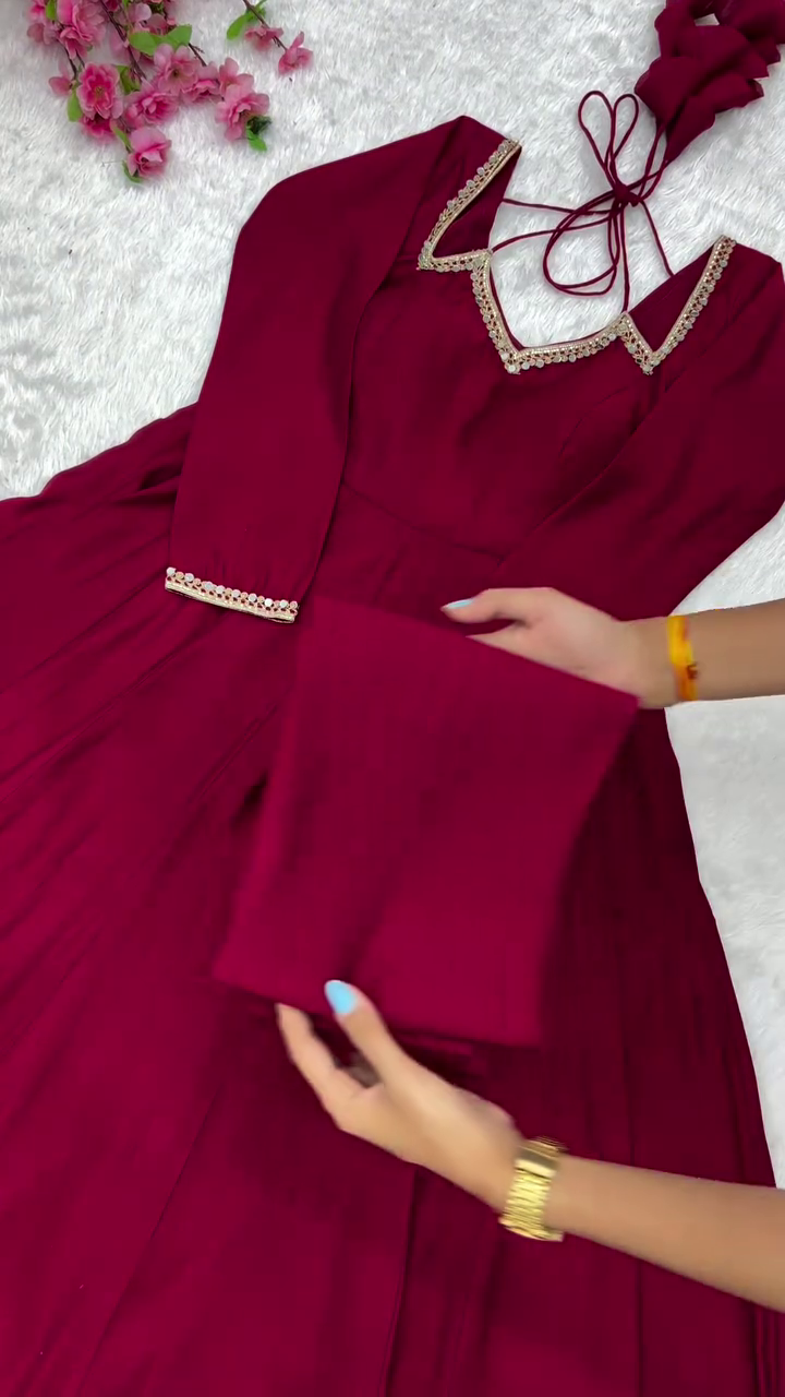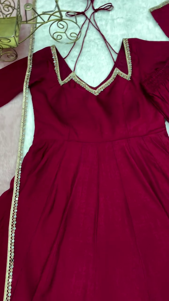 Self Design Chanderi Stitched Anarkali Gown (Maroon)