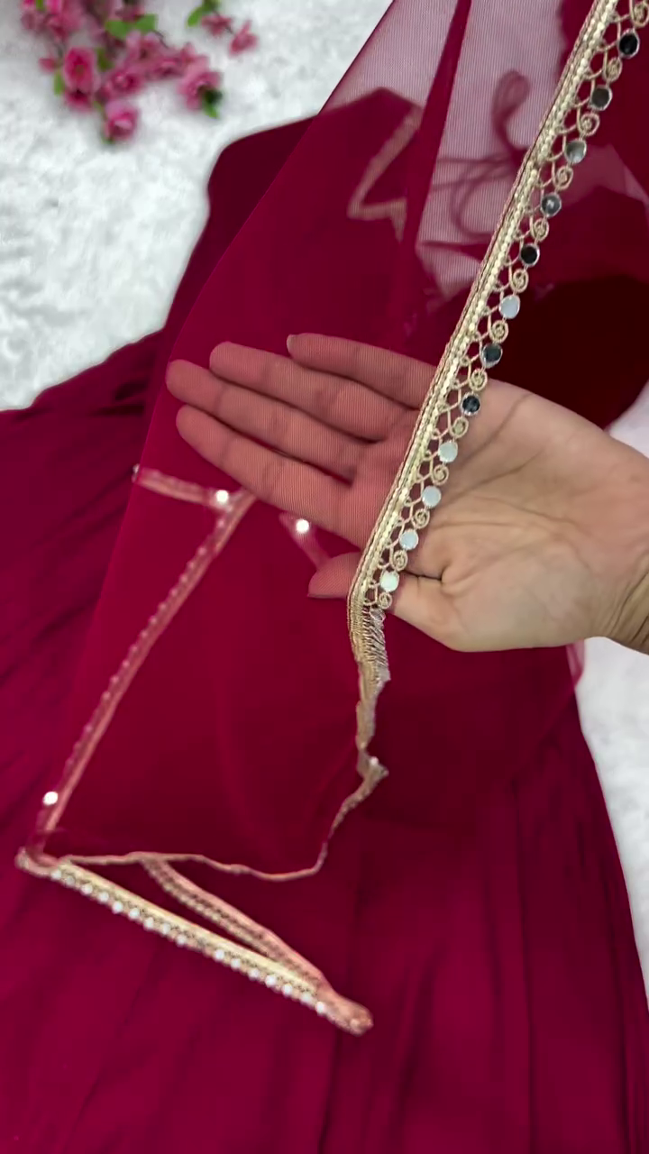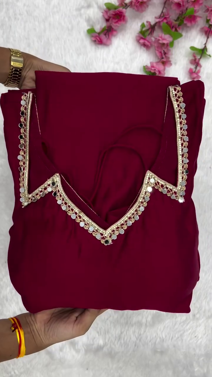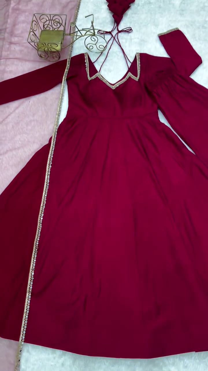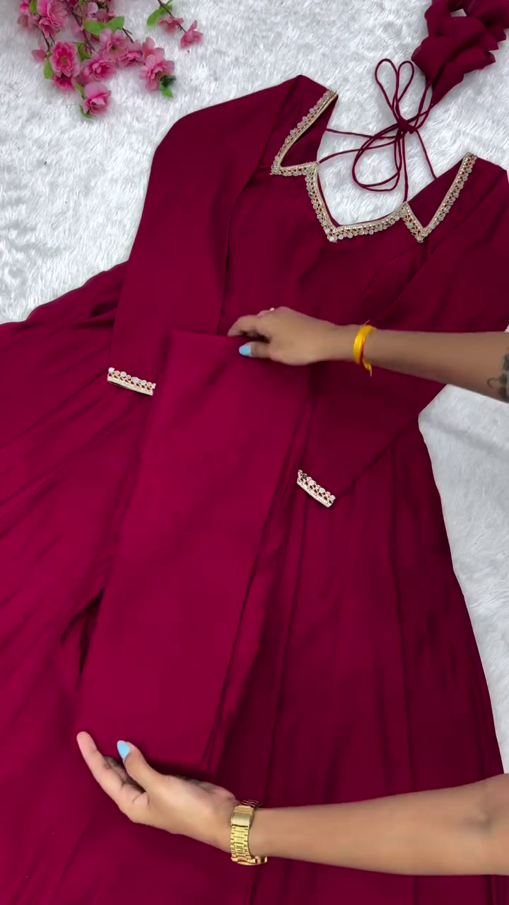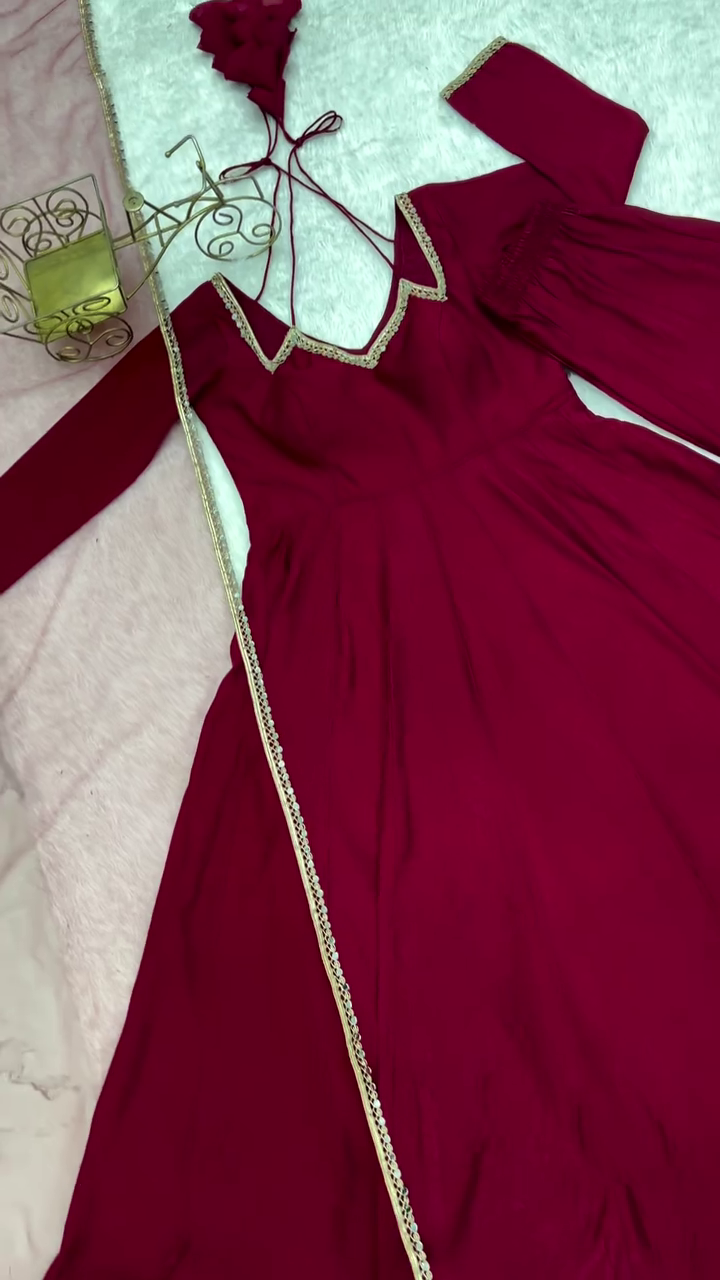 Self Design Chanderi Stitched Anarkali Gown (Maroon)